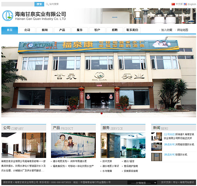 海南甘泉實業(yè)有限公司是海南目前唯一一家集深井提水、飲用水凈化(管道直飲水)及污水處理、小城鎮(zhèn)水廠及供水管網(wǎng)建設(shè)、溫泉地熱水開發(fā)利用為一體,從事產(chǎn)品研發(fā)、生產(chǎn)和銷售的企業(yè)實體。本公司從設(shè)計、安裝、維修到技術(shù)咨詢一條龍服務(wù)是海南省水行業(yè)具有較完整體系的規(guī)模企業(yè)。本公司本著“質(zhì)量第一,服務(wù)至上”為宗旨,努力打造海南省水行業(yè)精品。公司董事長被海南省土木建筑學會給排水學術(shù)委員會聘為副主任委員,同時被海南省地熱礦泉水協(xié)會聘為第三屆理事會常務(wù)理事。