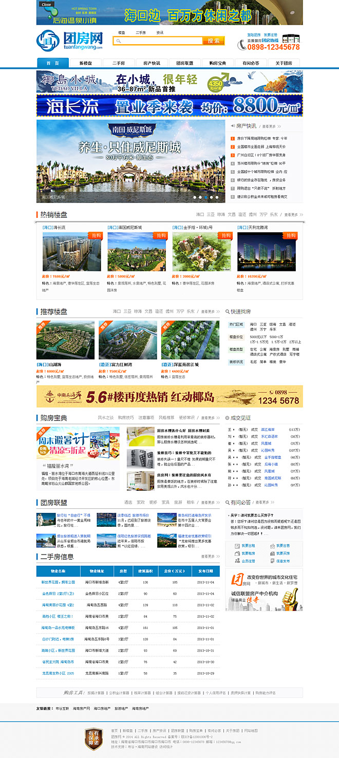 公司簡介:團(tuán)房網(wǎng)是專業(yè)的房地產(chǎn)代理平臺,致力于為島內(nèi)外客戶提供專業(yè)的網(wǎng)絡(luò)體驗(yàn)式購房服務(wù)。“海南房地產(chǎn)網(wǎng)”建成于2007年,在海南現(xiàn)有4家分公 司、在河南、貴州、浙江、北京設(shè)有辦事處,現(xiàn)有員工近100人;主要從事海南房地產(chǎn)信息發(fā)布、宣傳、策劃、營銷等業(yè)務(wù)。海南房地產(chǎn)網(wǎng)讓您在全國各地都能及 時(shí)了解到海南樓盤的新動態(tài)。