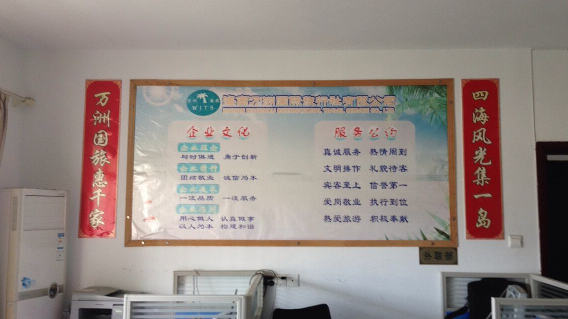 海南省萬洲國際旅行社有限公司是經(jīng)海南省工商局登記注冊,由海南省旅游局審批,并足額繳納質(zhì)量保證金后,于2010年成立。公司管理、業(yè)務(wù)、技術(shù)等骨干人員,多為海南建省后在海南旅游建設(shè)大潮中踏浪而歌的佼佼者,它們久經(jīng)旅游事業(yè)規(guī)則的不斷洗禮,緊跟著海南旅游共同成長,是營銷、酒店、房產(chǎn)、交通、網(wǎng)絡(luò)、餐飲等各個(gè)行業(yè)中不可多得的人才。因此,萬洲國旅在酒店、景區(qū)、車輛、導(dǎo)游、餐廳等環(huán)節(jié)上早已有了劣實(shí)的基礎(chǔ)。憑著多年的經(jīng)驗(yàn) 、專業(yè)的知識、廣泛的資源、堅(jiān)定的信念、遠(yuǎn)大的抱負(fù)、永恒的激情、誠摯的信用、不斷創(chuàng)新的精神和忘我的工作熱情,萬洲國旅將為海南國際旅游島增添更多的光彩。