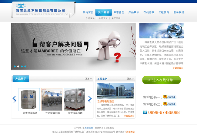 日前,海南天泉不銹鋼制品有限公司委托我司建設網站。 據(jù)悉,海南天泉不銹鋼制品有限公司是一家主營熱水保溫、不銹鋼水箱、汽車水箱、玻璃鋼水箱、保溫水箱、裝配式水箱、膨脹水箱、消防水箱、保溫水塔、熱泵水箱、儲水箱、水箱、給排水的制造商 、經銷商、工程商。 以下是網站首頁效果圖: